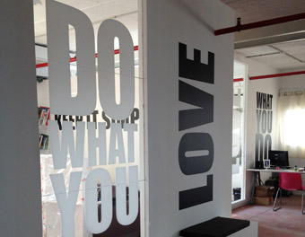 עיצוב משרדי לאקה באמצעות מדבקות קיר.