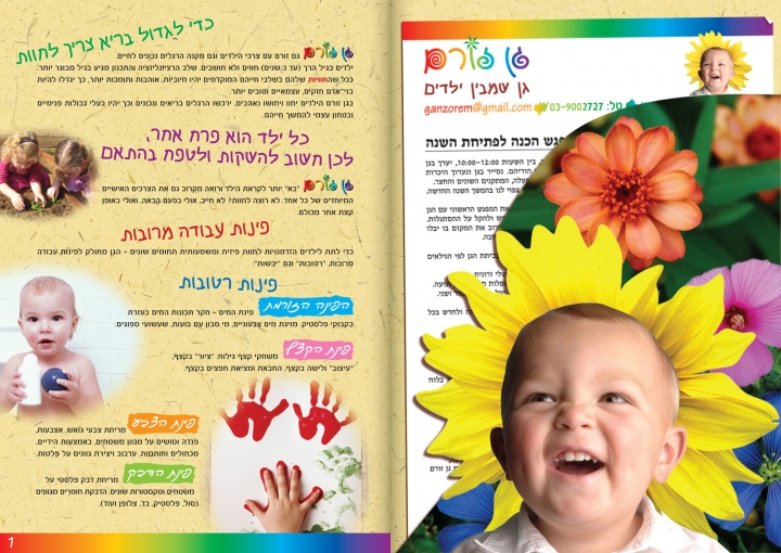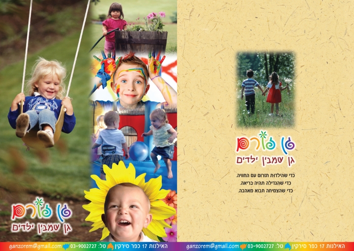 מיתוג לגן ילדים, כולל קופירייטינג, עיצוב לוגו, שילוט, כרטיס ביקור, אוגדן (פולדר) והזמנות לאירועי השקה והיכרות