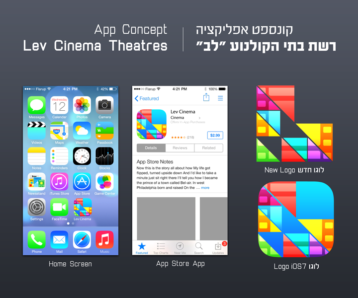 זהו פרוייקט צדדי אישי בעיצוב UI/UX ללא ידיעת או אישור מנהלי רשת קולנוע "לב" שכל מטרתו היא תצוגת יכולת. אני מעוניין להכנס לתחום עיצוב האפליקציות או עיצוב UI/UX כשכיר או כפרילאנס.