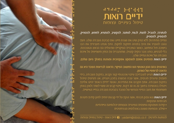 נוצר השם, הסלוגן, נראות חזותית שפותחת אופציה תעסוקתית להתרחבות עסקית עתידית. הנקודות אגב, הם כתב ברייל וכתוב בו -"ידיים רואות". לכתבה מרגשת על מעסה עיוור "בידיים רואות", ששודרה במהדורת שישי האחרונה בערוץ 10, לחצו כאן.