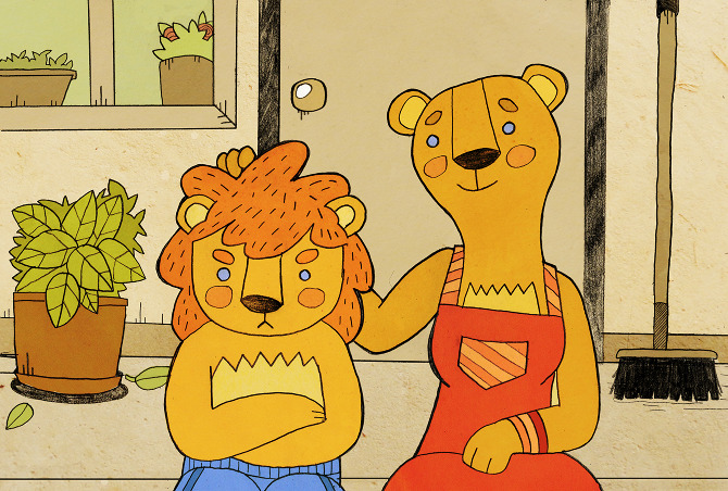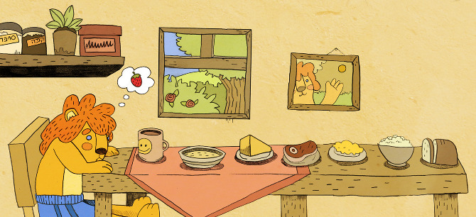 איור לסרטון קצר עבור ערוץ "הופ", מבוסס על סיפור הילדים "האריה שאהב תות". בימוי וארט דירקשן: לאה ברקוביץ' סיפור: תרצה אתר קול: ירדן בר כוכבא
