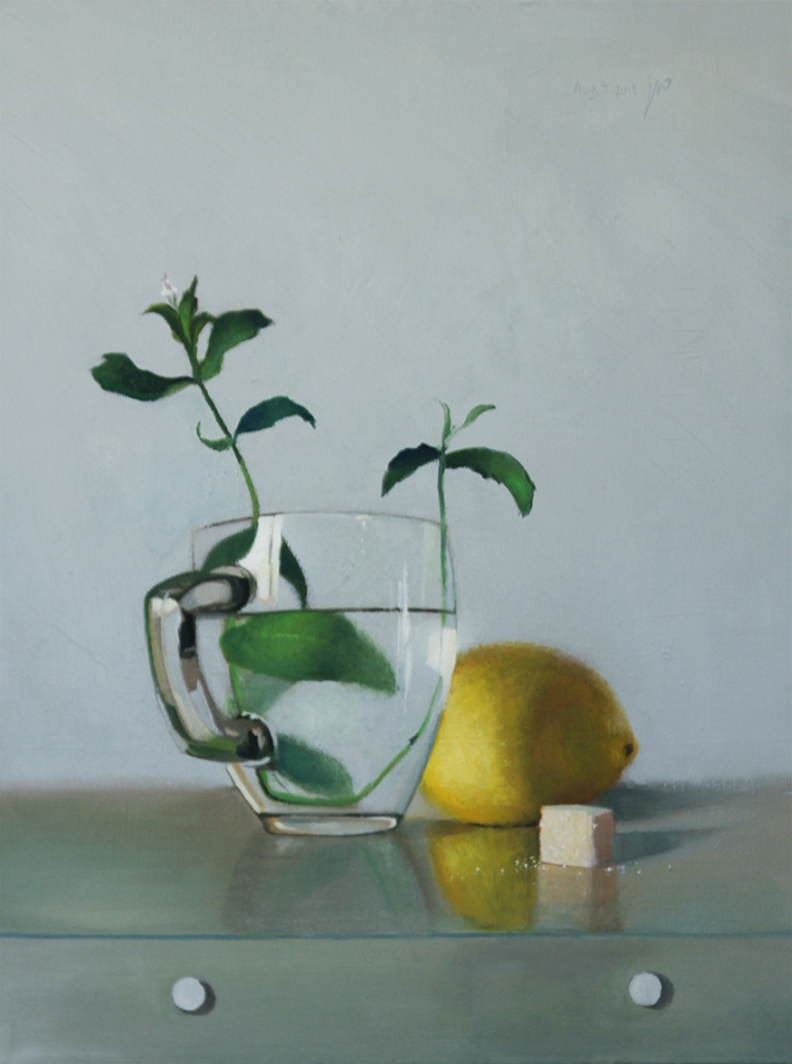 תה נענע עם לימון ציור שמן על בד טבע דומם אמנות ישראלית